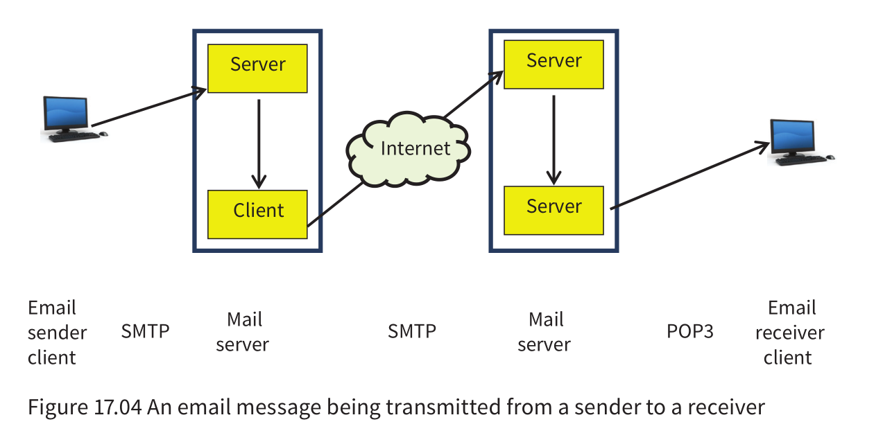 - The email sender acting as a client has a connection to a mail server. This server then has to function as a client in the transmission to the mail server used by the email receiver acting as a client.
