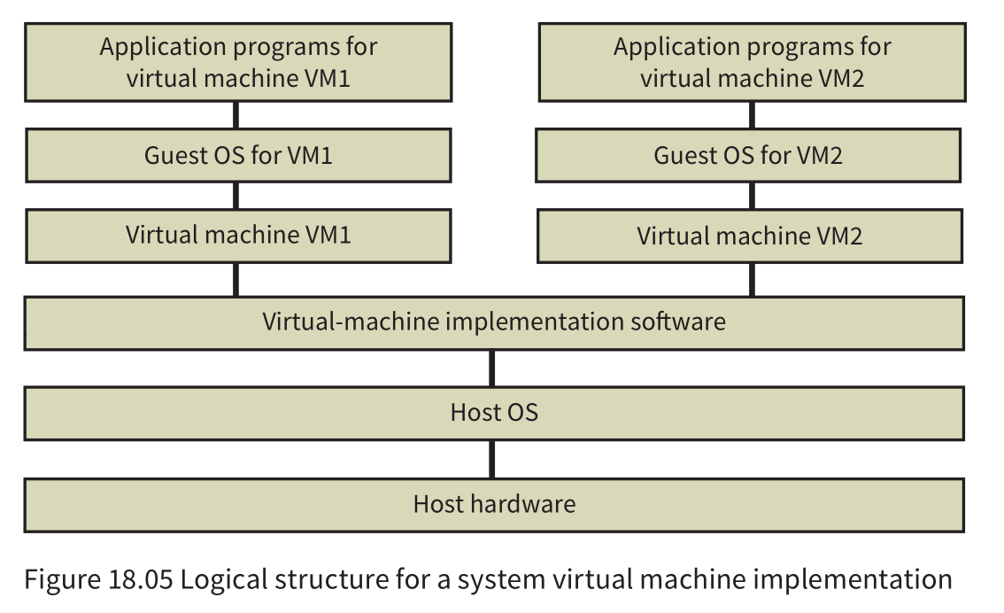 - There can be application programs running at the same time directly on the host hardware under the control of the host OS.